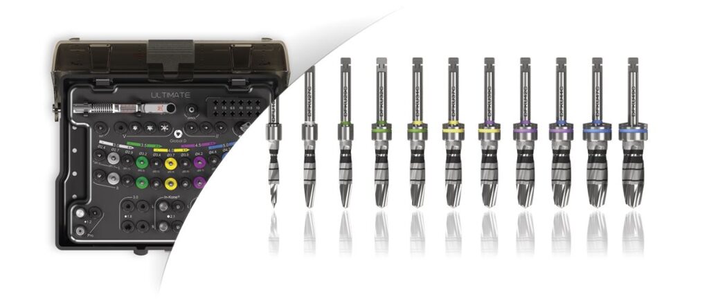 ULTIMATE — це не просто набір борів, а продуманий хірургічний алгоритм. Його дизайн базується на принципі гомотетичності: форма остеотомії максимально відповідає геометрії імплантата. Такий підхід дозволяє досягати щільного контакту між імплантатом і кісткою вже на етапі встановлення, без надмірної компресії або травматизації тканин.
